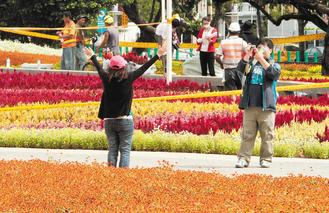 中新網10月9日電 據臺灣《聯(lián)合晚報》報道,臺北花博會今天起展開4階段開園測試,今天上午首先開放5000名測試志工進入圓山公園區(qū)。圓山展區(qū)種植超過625萬株花卉,放眼望去片片花海,其中占地近一公頃的“地景花!,就有近60萬株花,令首次入園的志工驚艷不已。