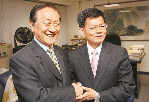 中新網(wǎng)11月5日電 據(jù)臺灣媒體報道,正當(dāng)國民黨為大高雄“棄!毙(yīng)忙于消毒的時刻,無黨籍大高雄市長參選人楊秋興4日突訪新黨主席郁慕明。半小時閉門會談后,郁慕明說,新黨支持國民黨“五都”參選人,同時說新黨是柔性政黨,支持者有選擇的空間,他并祝福楊能在大高雄市長選舉中“脫穎而出”。