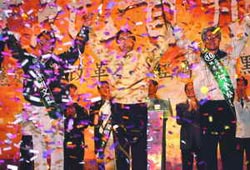 然后二○○四年“大選”來(lái)了,國(guó)民黨早早進(jìn)行“連宋合”的團(tuán)結(jié),看來(lái)似乎又要重演一九九八年臺(tái)北市長(zhǎng)選舉的戲碼。居于劣勢(shì),陳水扁使出全力,在投票前夕神奇地發(fā)生了“兩顆子彈”的事件,讓他在“大選”中以兩萬(wàn)票的差距險(xiǎn)勝。除了“奇跡”,還能如何稱呼這樣的轉(zhuǎn)折變化呢?