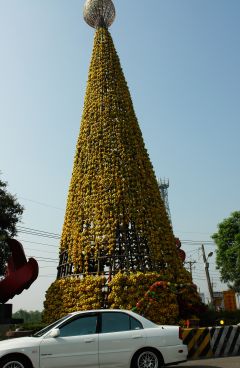 據(jù)臺(tái)灣“中廣新聞網(wǎng)”報(bào)道,數(shù)量龐大的橙子果海,堆聚在云林古坑知名的綠色隧道景點(diǎn)周邊,映照一片金黃意象,極為壯觀。一株高達(dá)五層樓、號(hào)稱全世界最大的橙子圣誕樹,就矗立于綠色隧道入口處熱情迎賓,吸引民眾爭(zhēng)相拍照留念。