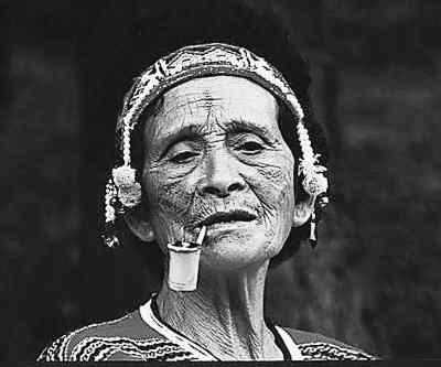 泰雅文化工作者田貴實(shí)先生告訴我們,對(duì)男子而言,文面是成年的標(biāo)志,也是勇武的象征;對(duì)于女子,則是善于織布的標(biāo)記。同時(shí),文面還有辟邪、美觀和祖靈識(shí)別的作用,經(jīng)過完整文面的泰雅男女生時(shí)受到族人的認(rèn)可、敬重,死后則可順利通過“彩虹橋”,到達(dá)祖靈承諾的安息之鄉(xiāng)。但文面的風(fēng)俗在日據(jù)時(shí)代被禁止,如今尚存的文面老人已不多(見圖)。