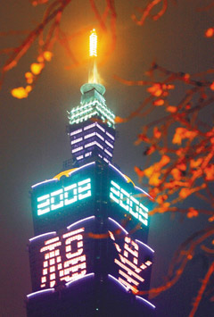 圖:臺(tái)北市101大樓亮出"春"、"福"向市民拜年