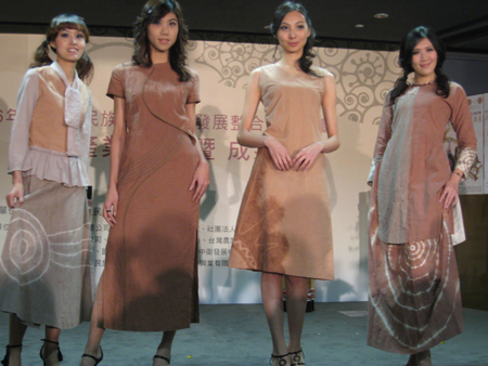 中新網(wǎng)1月18日電 據(jù)“中央社”報道,臺灣原住民部落產(chǎn)業(yè)發(fā)展營銷成果展十七日在南港開幕。排灣人設計師以檳榔子染布結(jié)合排灣人傳統(tǒng)圖騰的百步蛇蛇紋組合設計的創(chuàng)意植物染服飾,環(huán)保且健康。結(jié)合白色代表純潔、紅色代表血液、菱形圖案代表祖靈的眼睛,所設計的旗袍也在2007全球城市小姐選拔賽大受贊許。(翁翠萍)