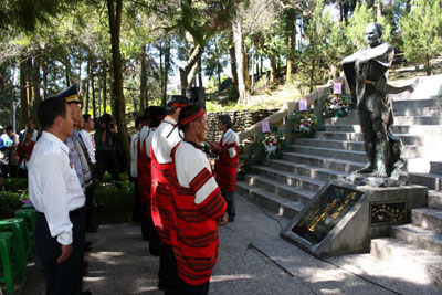 中新網(wǎng)10月26日電 霧社起義事件迄今已七十七年,為緬懷“原住民”抗日英雄莫那魯?shù),臺灣南投縣多個(gè)單位今天在霧社抗日紀(jì)念碑前舉行祭典,一同向烈士英靈致敬。