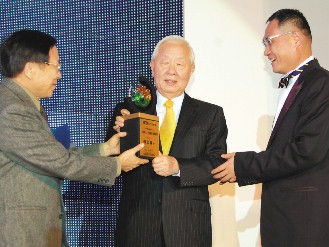 頒獎(jiǎng)典禮上,兩岸企業(yè)家云集。臺(tái)灣知名人士王建煊目前在浙江平湖辦新華愛(ài)心學(xué)校,資助清寒學(xué)生,昨天也特別驅(qū)車一個(gè)半小時(shí),從平湖趕赴上海參加盛會(huì)。