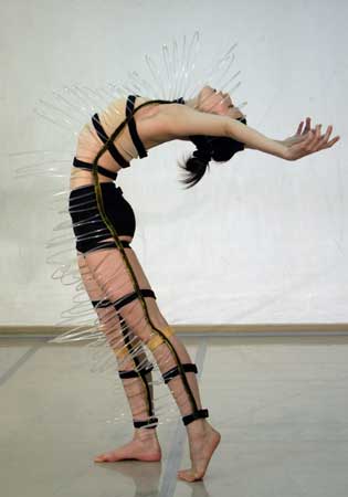 云門舞集2“2008春斗鳥之歌”三月二十六日起將在新舞臺(tái)一連演出五場(chǎng),這是云門火災(zāi)后第一檔公演。圖為二月二十五日云門舞者表演編舞家黃翊新創(chuàng)作的“身·音”。(“中央社”圖;張皓安攝)