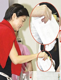 中新網3月25日電 據(jù)香港明報報道,臺灣著名藝人林青霞日前遠從香港返臺投票,結果被傳媒發(fā)現(xiàn),她在投票時,用私章而不是法定的投票印章蓋在選票上,成了廢票,而她的好友兼老師、作家龍應臺竟也是如此,昨日龍應臺接受訪問時自嘲是“大傻瓜”。