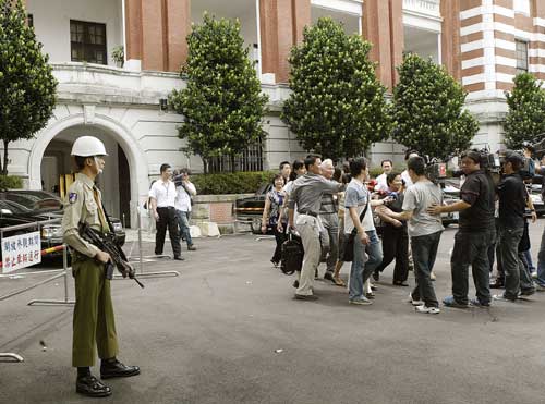 報(bào)道說,馬英九辦公室從六月九日再度開放參觀以來,以往參觀的都是零散的大陸觀光客,上午首度有來自廣州的觀光團(tuán)前來參觀。
