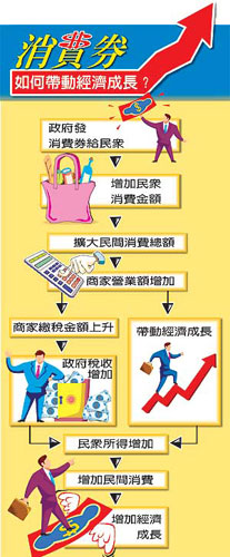 此外,為有效降低成本,有關(guān)消費券的形式,“經(jīng)建會”傾向“發(fā)券不發(fā)卡”,每張面額100元、使用期限為半年,不找零。適用范圍目前有兩種主張,其一是擴(kuò)大到所有商家,不限開立統(tǒng)一發(fā)票者,商家事后“憑券請款”。另一主張是,消費券只能用于開發(fā)票的商家,排除沒有發(fā)票的傳統(tǒng)市場或一般小店,以證明有實際消費行為。