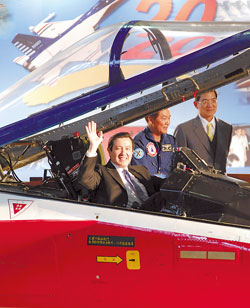 馬英九12月28日首度試乘20年前出廠的編號10001“經(jīng)國號”戰(zhàn)機。(來源:臺灣《中國時報》)