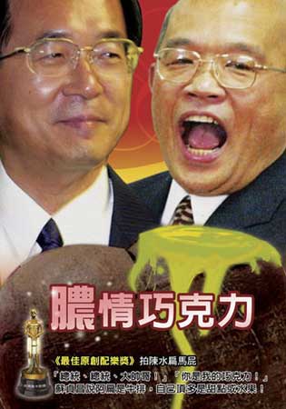臺“全民麻辣鍋”網(wǎng)站最近開設(shè)了“2005至2007臺灣奧卡斯獎——民進黨執(zhí)政之荒謬劇場”票選活動,以反諷、笑中帶淚的方式為民進黨“執(zhí)政”頒獎。民進黨4大天王及扁妻皆成為臺灣民眾惡搞對象,通通上榜,并奪得各項大獎。