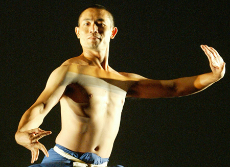 《男人跳舞》登上臺北舞臺,從父親的關(guān)系、女性特質(zhì)、暴力、變身及性別等主題出發(fā),剖析多變與復(fù)雜的男性認(rèn)同議題。圖為獨(dú)舞的泰國古典面具舞者皮歇•克朗淳。記者林秀明/攝影