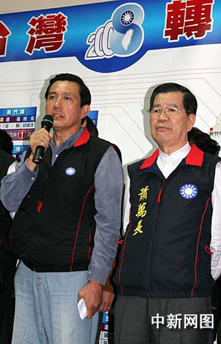 馬英九、蕭萬長(zhǎng)并肩出席國(guó)民黨中央黨部“立委”選舉結(jié)果記者會(huì)。 作 者:孫自法