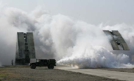 臺軍演習(xí)反擊對手突襲導(dǎo)彈基地 場面逼真(圖)(2)