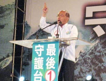 民進(jìn)黨“副總統(tǒng)”候選人蘇貞昌20日在高雄市“最后一席、守護(hù)臺(tái)灣”造勢晚會(huì)批評(píng)對(duì)手陣營的主張。