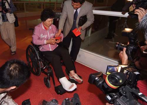 圖:臺灣游客四川震區(qū)歷劫后返臺 驚魂未定(2)