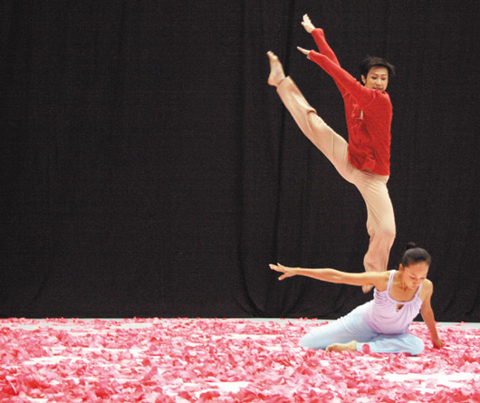 農(nóng)歷大年初五一場大火,燒掉云門舞集的家,浴火后云門再度出發(fā),昨天在數(shù)萬片花瓣圍繞下舞新作“花語”。藝術(shù)總監(jiān)林懷民說,人生有不同風(fēng)景,不見得都是美麗的,“花語”不只有漂亮的花瓣,還有不斷擾人的風(fēng)扇聲,吹動著花瓣隨處飄飛,這風(fēng)是人生的風(fēng),不知不覺吹白了頭。(臺灣《聯(lián)合報》圖)