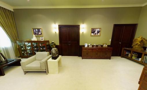 這是陳水扁每天辦公的地方,面積二十四坪。從二○○○年五月二十日就任以來,陳水扁每天在這里辦公。