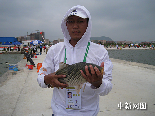 中新網(wǎng)泉州10月26日電 在今天上午舉行的第六屆農(nóng)運(yùn)會(huì)手桿釣混合魚(yú)單尾重量賽中,福建選手陳樹(shù)清釣到一條將近七斤重的大魚(yú)。