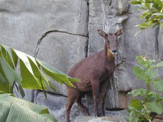 臺灣長鬃山羊?yàn)榕_灣特有種。它們主要分布在臺灣山區(qū),烏來延伸至中央山脈仍可看到它們的蹤影。其外形為深褐色,喉部為黃色,硬蹄分泌蹄脂腺,有助于攀爬山巖,并牢牢地踩在石縫之間,因此喜在懸崖附近活動(dòng),奔跑速度快,若受外力入侵,它們還會以頭上一對向后彎曲的洞角頂人自衛(wèi);平時(shí)吃桑葉、鹿構(gòu)樹葉、三黃麻等枝葉、胡蘿卜等。