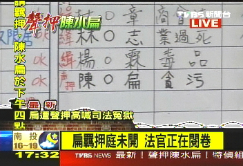 中新網(wǎng)11月11日電 據(jù)臺灣TVBS電視臺報(bào)道,陳水扁經(jīng)過近7小時(shí)偵訊后,在今天下午4點(diǎn)35分遭到臺灣檢方聲押,隨即被移送到臺北地方法院,而法院正在閱卷,閱卷后將開聲押庭,時(shí)間可能是在晚間8點(diǎn),將決定是否正式收押陳水扁。
