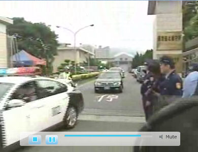 陳水扁乘坐的車輛駛離臺(tái)北看守所,前往臺(tái)北法院。(圖:臺(tái)灣東森電視臺(tái))