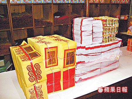 照片中的紙錢面額共500萬元,扁燒的是此數(shù)額5倍。
