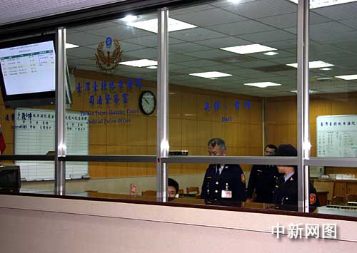 臺北地方法院司法警察室燈火通明。中新社記者 陳立宇/攝