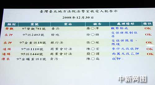 圖:臺(tái)北法院收受人犯告示顯示陳水扁被裁定羈押