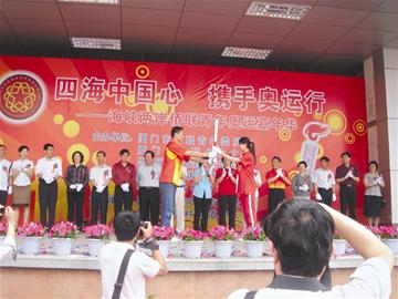 在火炬接力活動(dòng)結(jié)束之后,在場(chǎng)的臺(tái)灣學(xué)生、廈門僑界青年以及廈門各街道僑聯(lián)代表隊(duì)組成的18支隊(duì)伍,還興致勃勃地參與了主題為 “四海中國(guó)心·攜手奧運(yùn)行”的趣味運(yùn)動(dòng)會(huì)、奧運(yùn)謎語(yǔ)競(jìng)猜等嘉年華系列活動(dòng)。