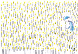 今早起來呆坐在書桌前,本想試著畫畫平日該畫的圖,但拿起筆后卻畫出了這幅。這圖也許有意義也許沒意義,我想我的感受恐怕不及災區(qū)朋友們的千萬分之一吧。人雖在臺灣,但心和你們在一起。