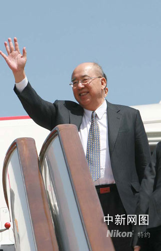 中國國民黨主席吳伯雄一行29日上午乘包機(jī)離開北京飛赴上海。攝影 廖文靜