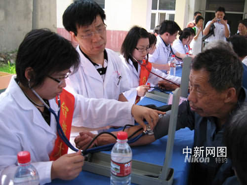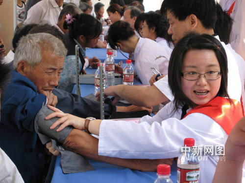 在寧臺(tái)灣大學(xué)生為老人們?cè)儾?wèn)傷、測(cè)量血壓。