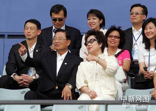 ;鶗麻L江丙坤一行在北京奧運會場館五棵松棒球場參觀。中新社記者 張宇 攝