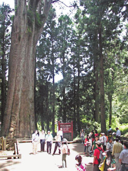 大陸客走訪阿里山神木群,見識(shí)神木的雄偉,紛拍照留念。
