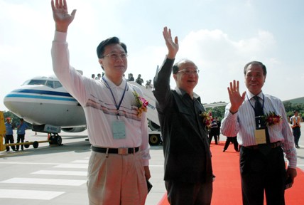 中新網(wǎng)7月4日電 兩岸周末包機(jī)今天首航,據(jù)“中央社”報(bào)道,臺(tái)中縣長黃仲生、臺(tái)中市長胡志強(qiáng)、彰化縣長卓伯源、南投縣副縣長陳志清上午九時(shí)率訪問團(tuán)一行,在臺(tái)中清泉崗機(jī)場(chǎng)搭乘臺(tái)灣華信航空班機(jī)啟程前往廈門,展開四天的招商和訪問。