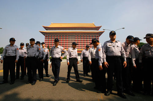 10月31日,臺灣警方在臺北圓山飯店外執(zhí)勤。