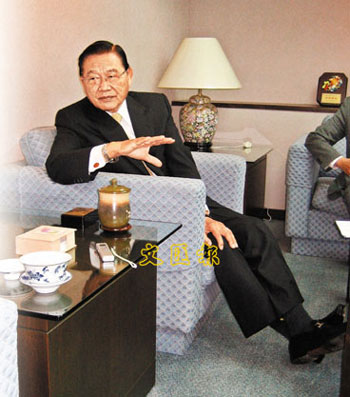 江丙坤日前在臺(tái)北會(huì)見(jiàn)了該報(bào)董事長(zhǎng)兼社長(zhǎng)張國(guó)良一行,就兩岸關(guān)系最新發(fā)展、港臺(tái)關(guān)系等交換了意見(jiàn)。