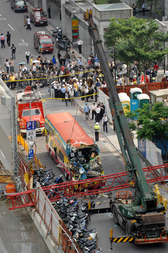 事發(fā)后,臺北市長郝龍斌已親臨現(xiàn)場關切,負責接待的旅行社主管也都趕赴意外現(xiàn)場及醫(yī)院。
