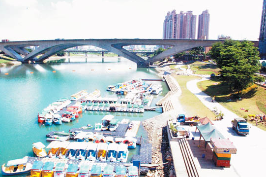 中新網(wǎng)9月26日電 臺(tái)灣《聯(lián)合報(bào)》刊文介紹,走出臺(tái)北捷運(yùn)新店總站,進(jìn)入新店路上碧潭吊橋后,映入眼簾就是臺(tái)北縣政府花費(fèi)一億三千萬(wàn)元新臺(tái)幣,甫于今年七月整治完成的大碧潭旗艦計(jì)劃成果?h府將碧潭打造成如同巴黎左岸風(fēng)情的“水岸都心”新氣象,已成為大臺(tái)北南區(qū)水岸景觀新地標(biāo),吸引許多游客駐足欣賞。