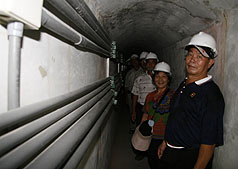 今年初啟用的金城民防坑道,在金城車站二樓新設入口坑道主題展示館,并以車站起至金門高中出口間的地下坑道及碉堡,設置主體坑道體驗區(qū),包括:民防展示館、炮擊聲光體驗區(qū)、黨部作戰(zhàn)指揮中心、糧秣庫房區(qū)、炮擊體驗區(qū)、坑道構(gòu)工展示區(qū)、金門精神音樂組曲播放區(qū)、出口服務區(qū)。