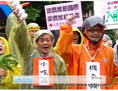 中新網(wǎng)11月6日電 臺灣民間團(tuán)體“人民火大行動聯(lián)盟”6日著帶著蔬果、雞蛋到當(dāng)局“行政院”前抗議。行動聯(lián)盟并列舉“高官何不食肉糜 言行錄”,其中陳水扁、呂秀蓮、“行政院副院長”邱義仁、“行政院經(jīng)建會”主委何美玥等都榜上有名。