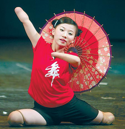 韋齊小時(shí)候就學(xué)跳舞、學(xué)彈琴,直到她因病被迫截肢,這兩件事變成“夢(mèng)想”,但昨晚她還是實(shí)現(xiàn)了這個(gè)夢(mèng)想。她用截肢后的雙腿踩著滑板出場(chǎng),引得全場(chǎng)熱烈掌聲;再隨著《虹彩妹妹》的節(jié)奏擺動(dòng)身軀、轉(zhuǎn)動(dòng)紙傘。她就像沒(méi)有翅膀的天使,在舞臺(tái)上慢慢飄舞。