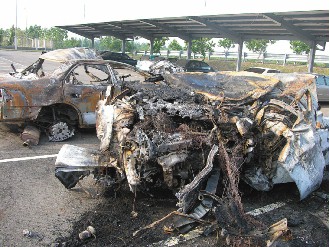 火勢(shì)順利撲滅后,發(fā)現(xiàn)兩部車(chē)上的駕駛及乘客均被燒成焦黑,已無(wú)生命跡象。由于辨識(shí)困難,目前仍未確認(rèn)死者身份,警方將進(jìn)行較精確的比對(duì)工作。目前正深入調(diào)查車(chē)禍詳細(xì)原因及死者身份。
