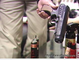 防身器材業(yè)者陳慈美表示:“這個(gè)叫做辣椒噴霧槍,它們噴出來的距離是5公尺到7公尺,噴出去的話是直線形,然后再擴(kuò)散,有點(diǎn)淺咖啡跟辣椒那種紅色的顏色出來!
