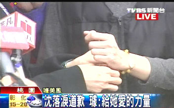 中新網(wǎng)2月26日電 2001因?yàn)樯⒉艰趁励P光盤(pán)入監(jiān)服刑1年的沈嶸今天出獄,璩美鳳和沈野夫婦及40名獨(dú)家報(bào)道的員工,前往桃園女子監(jiān)獄接沈嶸出獄,沈嶸落淚向璩美鳳鞠躬致歉,璩美鳳則贈(zèng)送佛珠,希望給她力量。