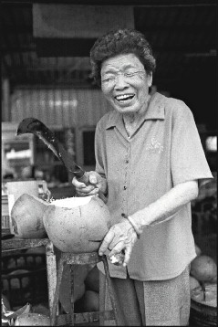 最健康的小桃阿嬤,至今仍在果菜市場(chǎng)靠賣椰子汁維生。當(dāng)聽到工作人員問現(xiàn)場(chǎng)劈二十個(gè)會(huì)不會(huì)吃力?她非常不以為然地說:“我劈一百個(gè)都沒問題!”