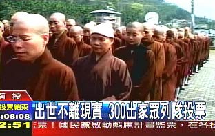 據(jù)臺灣媒體報道,10多輛大型游覽車,載著中臺禪寺的300多名和尚、尼姑,一同抵達(dá)投票所。300多人列隊整齊排在投票所外等候。