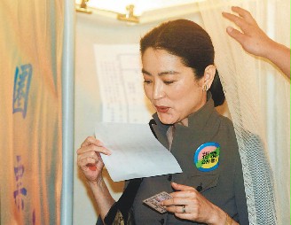 林青霞四年前在吹干選票時(shí)不慎亮票。(臺(tái)灣《聯(lián)合報(bào)》資料圖)