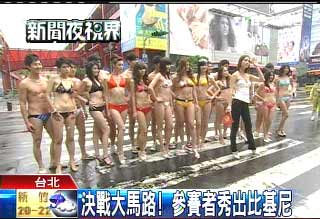 臺選秀節(jié)目挑戰(zhàn)尺度 選手穿比基尼馬路走秀(圖)